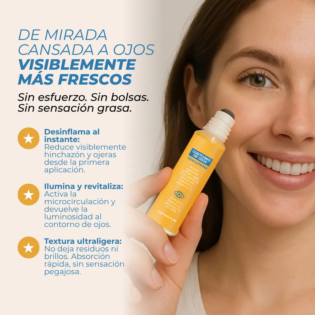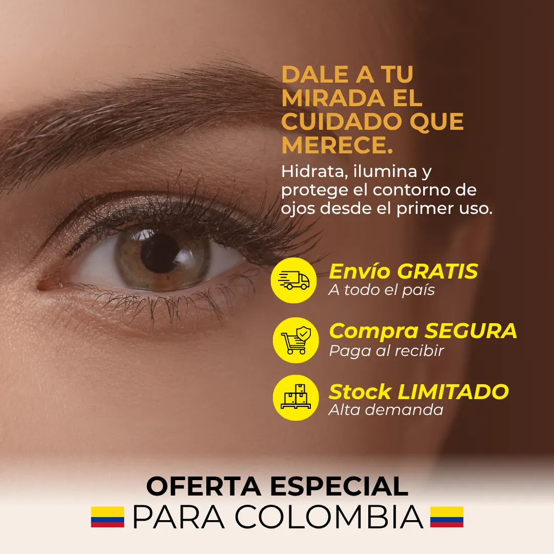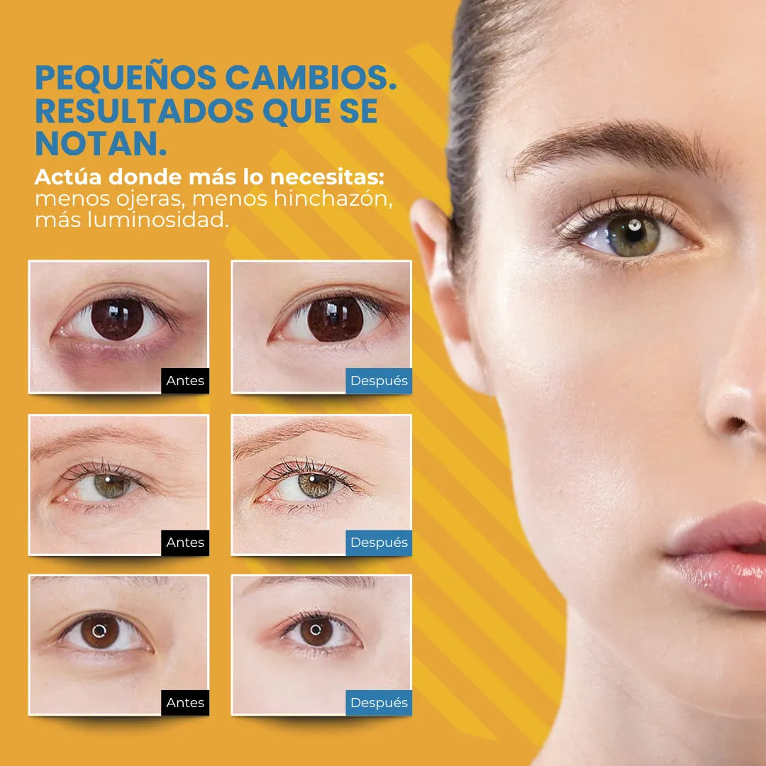 Ayuda a reducir la apariencia de ojeras, bolsas e hinchazón, mientras hidrata y protege la piel del estrés oxidativo y la luz azul.