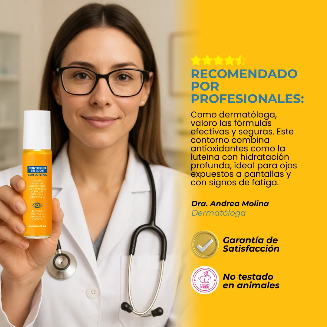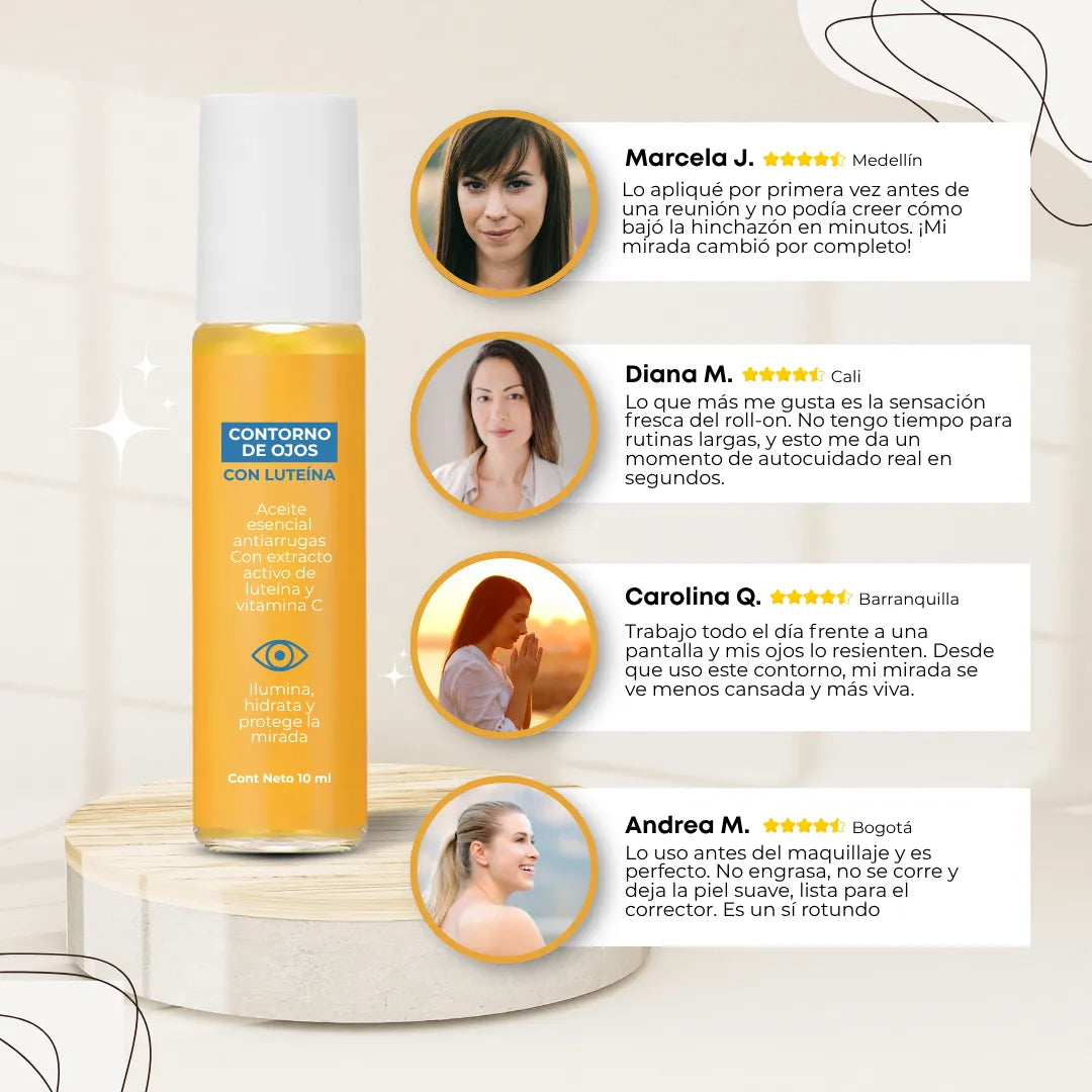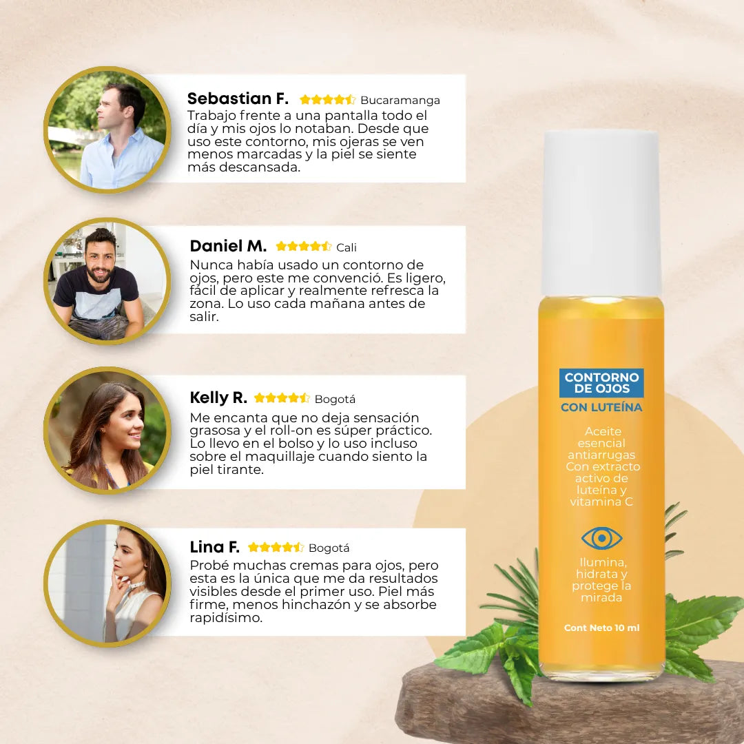 Ayuda a reducir la apariencia de ojeras, bolsas e hinchazón, mientras hidrata y protege la piel del estrés oxidativo y la luz azul.