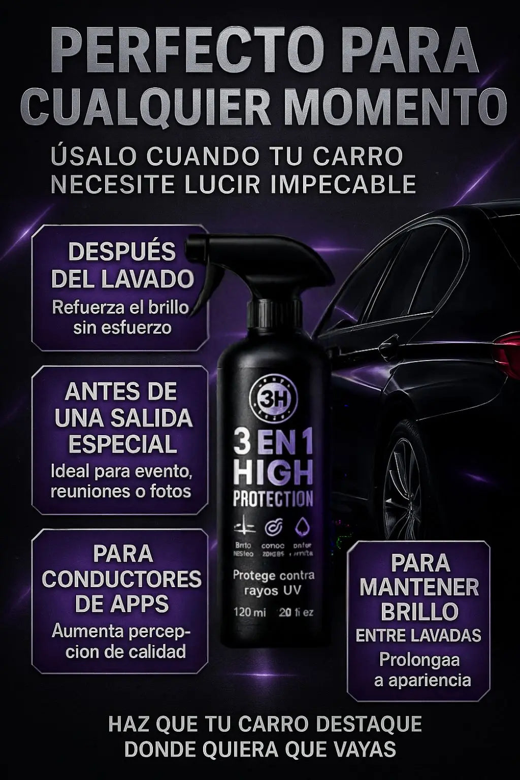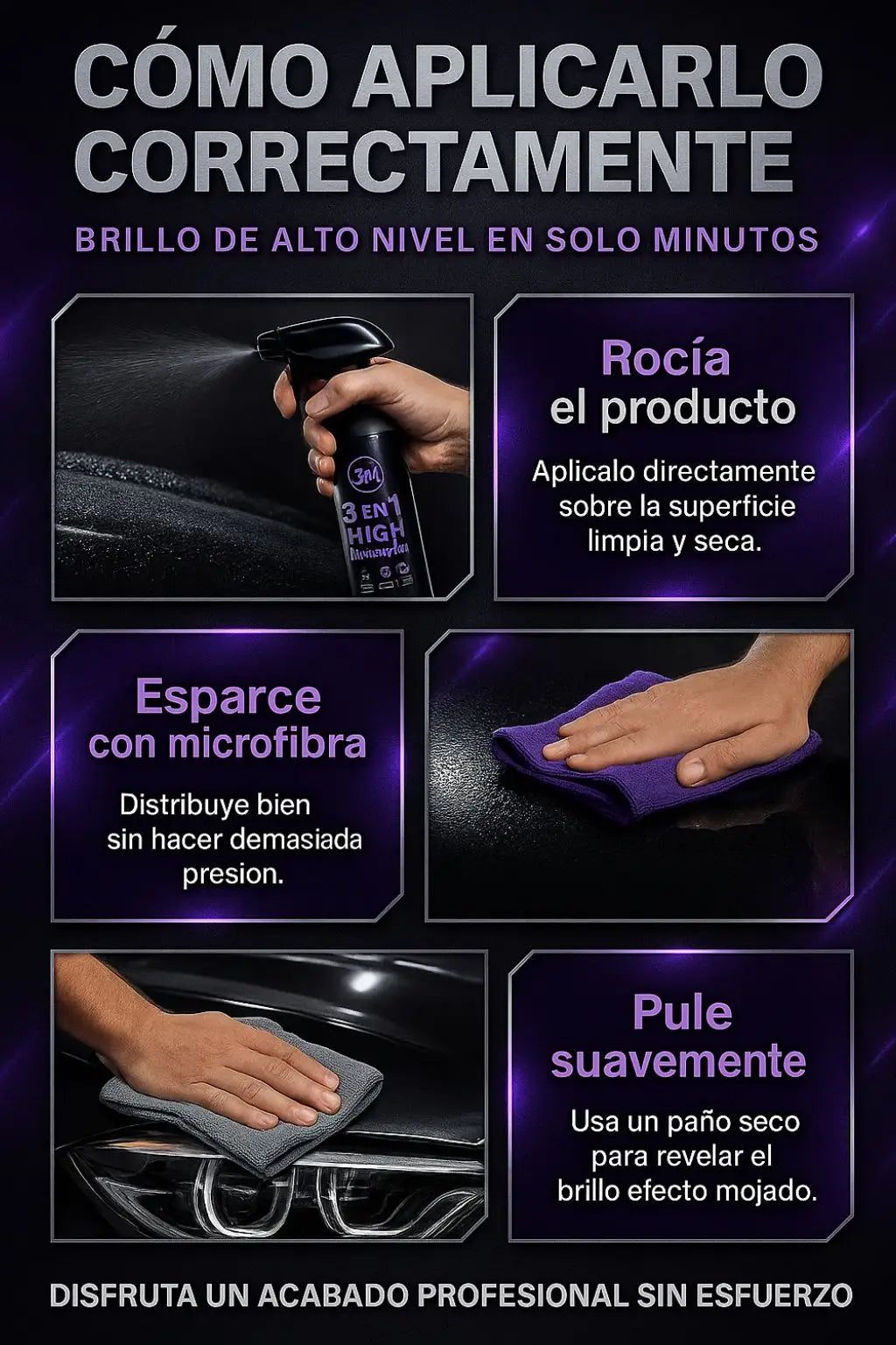 Cada aplicación puede durar hasta 3 meses, dependiendo del clima y frecuencia de lavado. Si el carro se lava con shampoo neutro, el brillo se mantiene por mucho más tiempo.